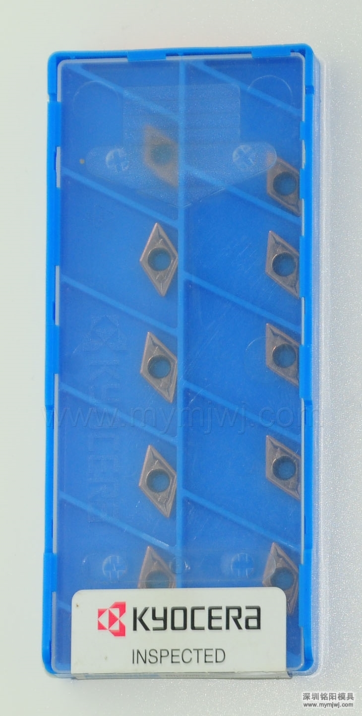 D型刀片:D型刀片外观是菱形55度,D型刀片主要是用于车工件外圆、端面、内孔等应用。