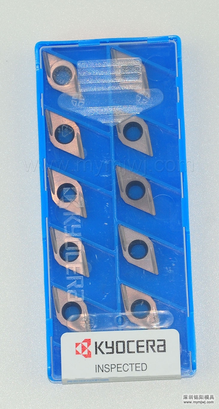 D型刀片:D型刀片外观是菱形55度,D型刀片主要是用于车工件外圆、端面、内孔等应用。
