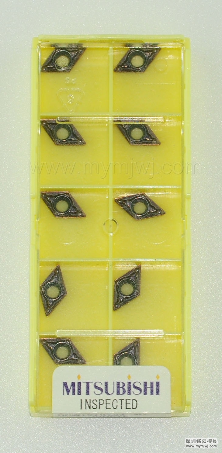 D型刀片:D型刀片外观是菱形55度,D型刀片主要是用于车工件外圆、端面、内孔等应用。